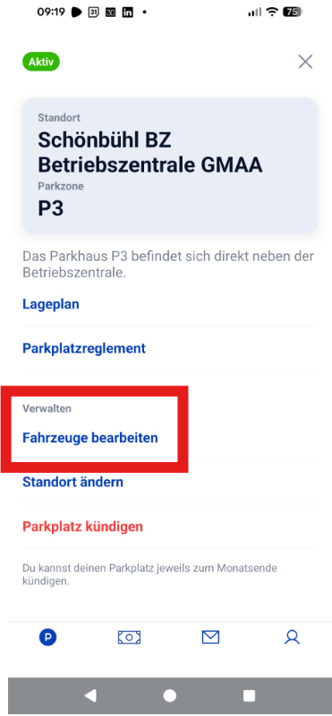 Informationen zum Standort deines Parkplatzes findest du direkt in der App über den Link "Ansehen und bearbeiten"
