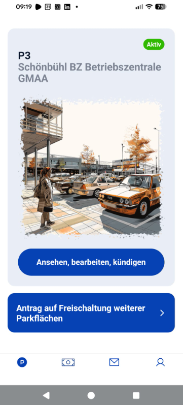 Falls zur Erfüllung deiner Funktion die Freischaltung weiterer Parkflächen benötigt wird, kannst du dies bequem in der App beantragen.