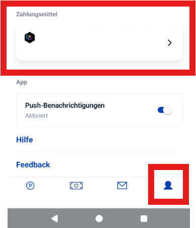 Wenn deine Kreditkarte bald abläuft oder du aus anderen Gründen dein Zahlungsmittel für M-Parking ändern möchtest, klickst du unten links auf dein Profil. Dort findest du das Menü "Zahlungsmittel".