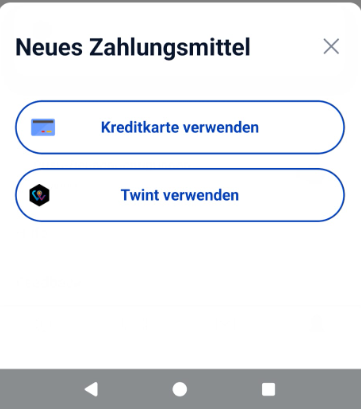 Wähle als nächstes, ob du mit Kreditkarte oder Twint bezahlen möchtest und folge den weiteren Anweisungen.