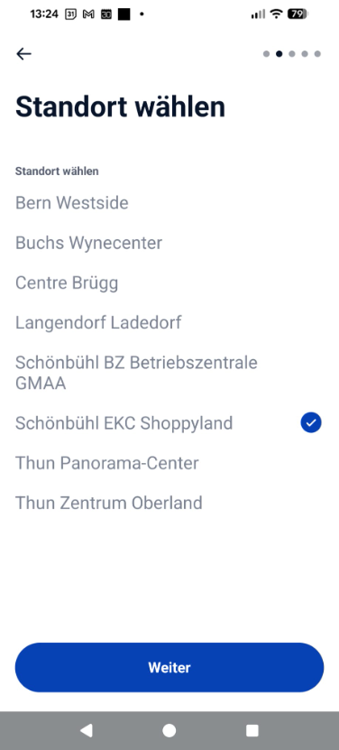 Im nächsten Schritt wählst du den Standort, an welchem du das Tagesticket kaufen möchtest. Ist der gewünschte Standort nicht aufgeführt, werden an diesem Standort keine Tagestickets verkauft.