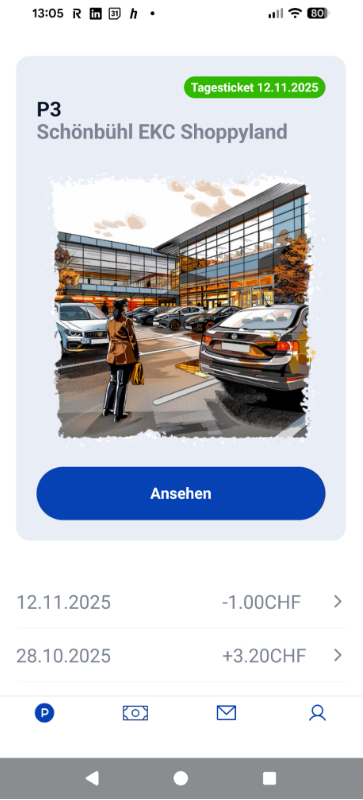 Tagestickets eignen sich für Mitarbeitende, die nur an wenigen Tagen pro Monat mit dem Auto zur Arbeit kommen. Der Preis und die Verfügbarkeit von Tagestickets variiert je nach Standort. Die verfügbaren Standorte findest du direkt in der App.
